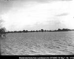 Enthält: Im Vordergrund: Wasserfläche, im Hintergrund: Bäume und Häuser