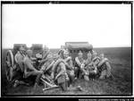 Enthält: kniende Soldaten hinter zwei Wagen; auf dem Abzug
