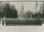 2. Hannoversches Infanterieregiment Nr. 77, Gruppenaufnahme im Schlosspark, im Hintergrund das Bomann Museum und der Stadtkirchturm