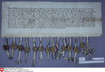 Ausfertigung Pergament, 48,5 x 17 cm. - Rep. 3 Lilienthal, Nr. 268. - 14 Siegel angehängt, 9. und 14. fehlen: 1. Hermann Vleckeschild, 2. Merten Vleckeschild, 3. Johann Vleckeschild, 4. Detwart Vleckeschild, 5. Luder von der Hude, 6. Dietrich von Aumund, Siegel Aumund (1) nach Trüper, Ritter und Knappen, S. 978, 7. Cord von Aumund, Siegelbild unkenntlich, 8. Luder von der Hude, 10. Hylmer von der Hude, 11. Kersten von der Hude, 12. Merten von der Hude, 13. Luder von der Hude, die Siegelbilder von 8 bis 13 alle von der Hude (3) nach Trüper, Ritter und Knappen, S. 997. - Regest: StA Stade, Dep. 10, Fa-3, Nr. 1 (Hodenberg, UB Lilienthal; 19. Jh.), Nr. 212.