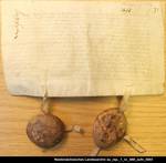 Anhängende. Siegel 1 beschädigt erhalten, 2 erhalten