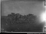 Enthält: Rastende Soldaten, Lafetten und Pferde mit Futtersäcken
