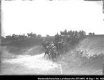 Enthält: Platte 27, Soldaten auf mit Pferden bespannten Geschützlafetten reiten einen Hang hinunter