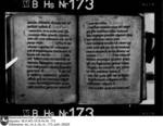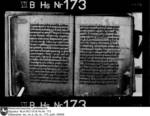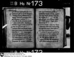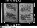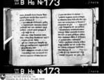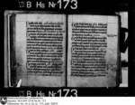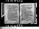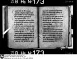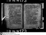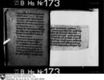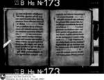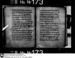 Schriftraum: 17 × 11 cm, 17 Zeilen. Textualis Gothica primitiva. Nachträge ab 102r in Bastarda. Zweizeilige rote Lombarden. 12v vierzeilige, gespaltene, in Blätter auslaufende Initiale D mit Blattranken im Initialengrund.
