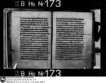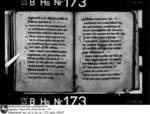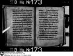 1r–6r Hildesheimer Kalendar. Fragment setzt ein mit März. Text für Februar völlig abgerieben. Den Monaten sind Merkverse der Dies aegyptiacae vorangestellt. Für Februar noch lesbar: Asr Februi quarta est… vgl. Grotefend, 36. Thorndike-Kibre, 651 (Iani prima dies …). Nur zwei Festgrade unterschieden: IX (Novem lectionum) u. III (Trium lectionum) vgl. VII B Hs 183. Translatio s. Godehardi ep., rot 4.5.; Nativitas s. Godehardi ep., rot 5.5.; Sanctorum Cantianorum, rot 31.5.; Translatio s. Bernwardi ep., rot 16.8.; Cosme et Damiani, schwarz 27.9.; Justi, Arthemii et Honestae, schwarz 11.10.; Speciosae virg., schwarz 15.10.; Bernwardi ep., rot 20.11.; Ceciliae virg., rot 22.11.; Adventus reliquiarum sanctae Mariae in Hildensem, rot 8.12. Nachgetragen: Translatio s. Blasii, schwarz 18.7.; Auctor, schwarz 20.8.; Adriani mart., schwarz 8.9.; Benedictae virg., schwarz 8.10.; Adventus reliquiarum s. Blasii, schwarz 3.11.; Aniani ep., schwarz 17.11. Nekrologeinträge von späteren Händen: (2r) 9.3. Theodericus obiit…, 22.3. M°CC°LXXXVIIII° Oda obiit. (2v) 19.5. Otto Romanus imperator obiit. 21.5. Rokerus laicus obiit. (3r) 11.6. Richeze imperatrix obiit. 24.6. Johannes de Colonia statuit … (Döll, 301). (3v) 20.7. Mette soror nostra obiit. (4r) 5.8. Hermannus obiit. 14.8. Herwicus decanus et presbiter obiit. (Döll, 301). (4v) 6.9. Obiit henricus dux in Brunsw. (5v) 3.11. Willehalmus frater noster obiit. (Döll, 302). 4.11. Johannes de Bornem obiit. 5.11. Gevehardus presbiter et canonicus noster obiit. 7.11. Theodericus obiit. 11.11. Volcmarus episcopus et frater noster obiit (?). 13.11. Geppa soror nostra obiit. 14.11. Bodo occisus est. 4.12. Luderus imperator obiit. (6r) 9.12. Gertrudis marchionissa obiit. 16.12. Anno canonicus noster obiit. (Döll, 301). 19.12. Johannes sacerdos et canonicus noster obiit.